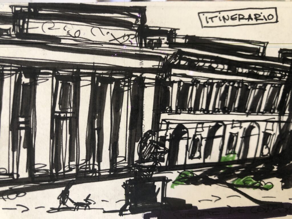 El primer itinerario, le propone la simple tarea de contar pasos mientras recorremos el exterior del Museo.