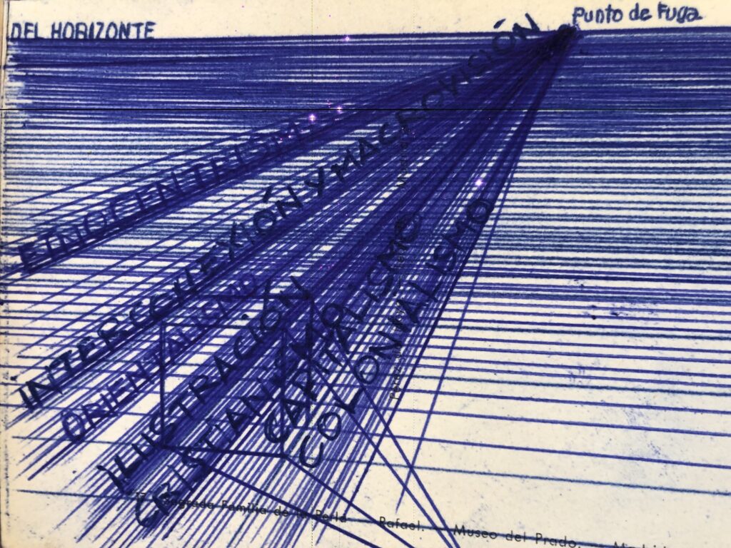 Nuestro último itinerario conmemora un gran periplo ( viaje circular físico y espiritual) , un cuadro fruto de la simbiosis de obras reconocidas, un cuadro que nos habla de la interacción y consiguiente interdepencia disfuncional a la hora de crear un nuevo imaginario común.